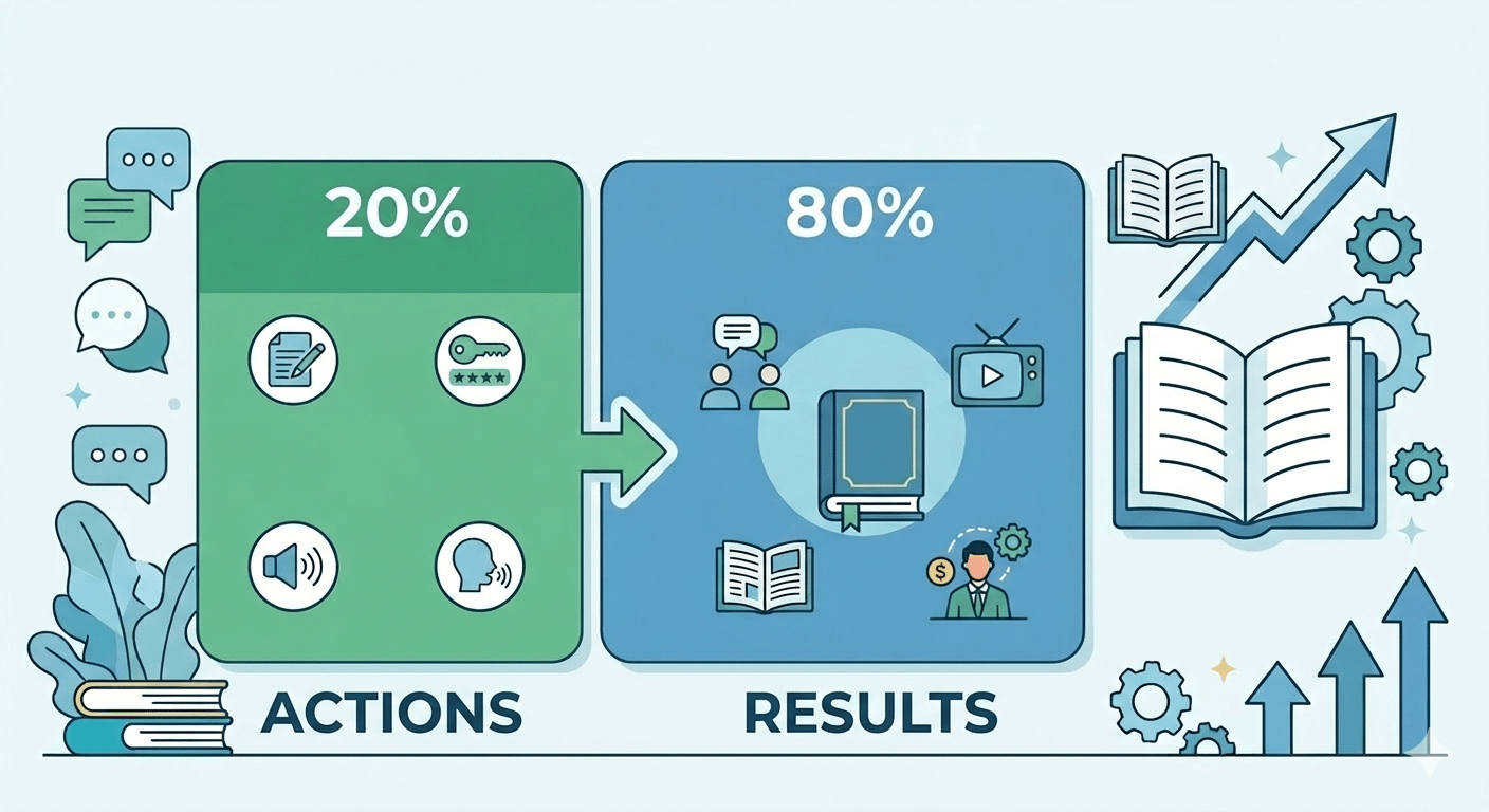 Welcome to 1% Every Thursday you receive tips and content to help you improve your English skills, 1 % at a time. In general terms, the Pareto Law states that 80% of results come from 20% of actions. For example: 80% of physical improvements come from 20% of exercises, or 80% of profits come from 20% of customers, or 80% of language progress comes from 20% of activities. So, if we apply this law to your English development, we need to consider the following: What do I spend 80% of my time...